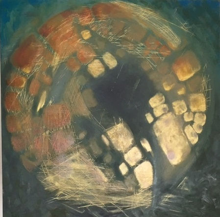 In her abstract work, Karin explores the shifting forms of nature through a meditative and expressive-arts based approach. Often using acrylics on paper or canvas, bending, folding, rubbing, scratching, and scrubbing to reveal what lies beneath. She embraces the imperfections that arise as necessary vulnerabilities in the emerged entity. Further, Karin considers how the entity now born may engage others in relationship through exhibition and community response.